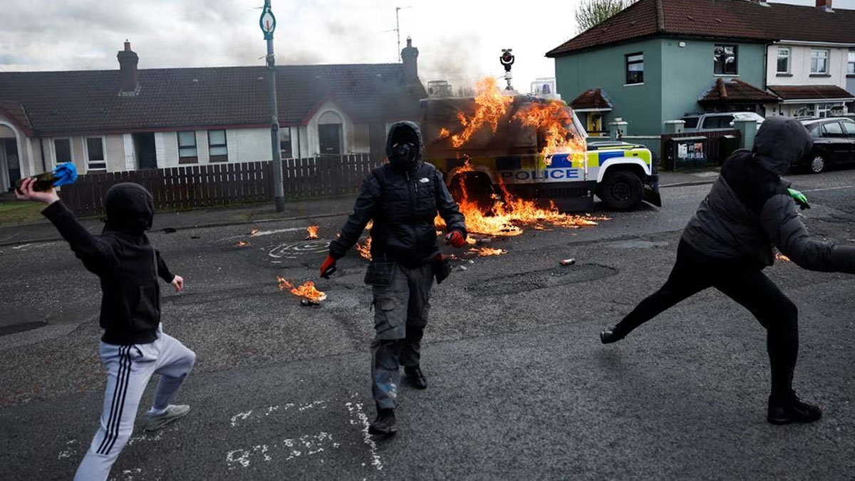 প্রতিবেদনে বলা হয়েছে, মার্কিন প্রেসিডেন্ট জো বাইডেনের বেলফাস্ট সফরের একদিন আগে পুলিশের গাড়িতে পেট্রোল বোমা হামলার ঘটনা ঘটেছে। সোমবার পুলিশ জানিয়েছে, লন্ডনডেরিতে গুড ফ্রাইডে শান্তি চুক্তির বিরোধিতা করে আয়োজিত একটি সমাবেশ থেকে বেশ কয়েকজন মুখোশধারী ব্যক্তি পুলিশের গাড়িতে পেট্রোল বোমা ও অন্যান্য বস্তু দিয়ে হামলা চালায়।