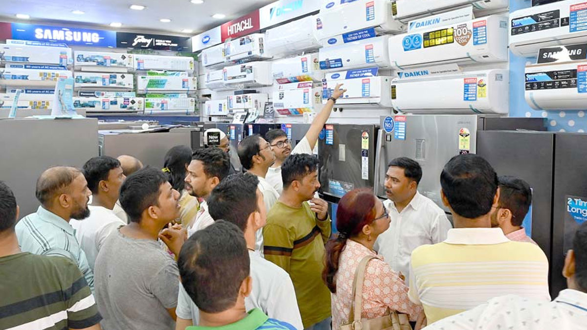 ঢাকার মতো অতিষ্ট গরমে কাহিল কলকাতাও। আর এই গরম থেকে বাঁচতে এসির দোকানে রীতিমতো হুমড়ি খেয়ে পড়ছে মানুষ।