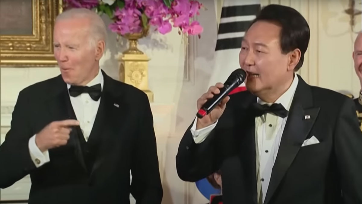 বার্তাসংস্থা এএফপি জানিয়েছে, বাইডেন কোরিয়ান প্রেসিডেন্টের সঙ্গে ‘আমেরিকান পাই’ নামের একটি গান নিয়ে কথা বলেন। এরপর এই গানটি গাইতে ইয়ুন সুক ইয়ুলকে আহ্বান জানান।
