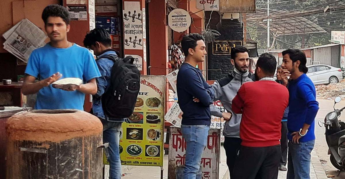 কাঠমান্ডুর ব্যস্ততম এলাকা নাক্সাল। সকাল থেকেই দৈনন্দিন কাজে এ এলাকা দিয়ে নেপালিদের প্রতিনিয়ত ছুটে চলা। এই ব্যস্ত সড়কে প্রায় এক ঘণ্টা অবস্থান করে দেখা গেছে, কেউ মাস্ক পরেছেন, কেউ মাস্ক এমনিতে ঝুলিয়ে রেখেছেন আবার অনেকে মাস্ক ছাড়াই ঘোরাঘুরি করছেন।