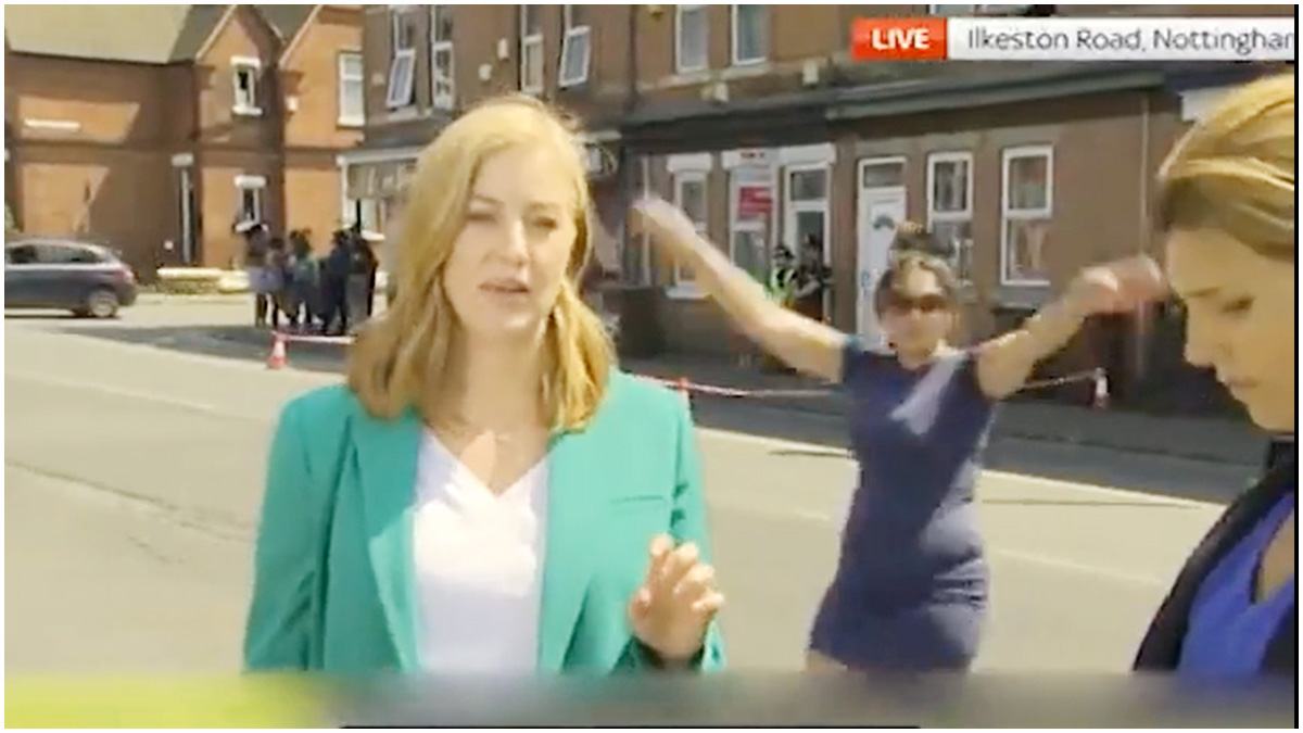 স্কাই নিউজের প্রতিনিধি সারাহ-জেন মি নটিংহামে পৌঁছে হত্যাকাণ্ডের ওই ঘটনার লাইভ করছিলেন। লাইভ চলাকালীন সারাহর পেছনের দিকে নীল রঙের টপ ও শর্টস পরিহিত এক নারীকে ক্যামেরায় দেখা যায়। হত্যাকাণ্ডের লাইভ করার সময় স্কাই নিউজের প্রতিনিধির পেছনে ওই নারী দুই হাত তুলে নাচেন।