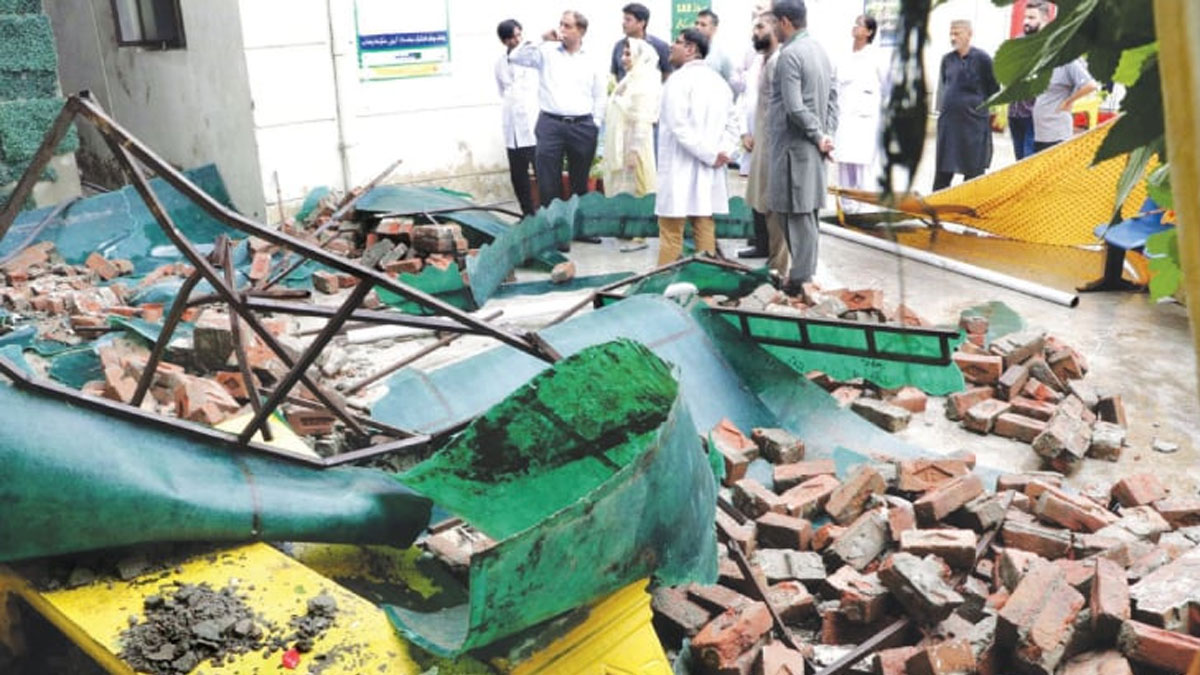 বৃহস্পতিবারের ভারী বৃষ্টির পর পাঞ্জাবের মোজাং হাসপাতালের ক্ষয়ক্ষতির দৃশ্য