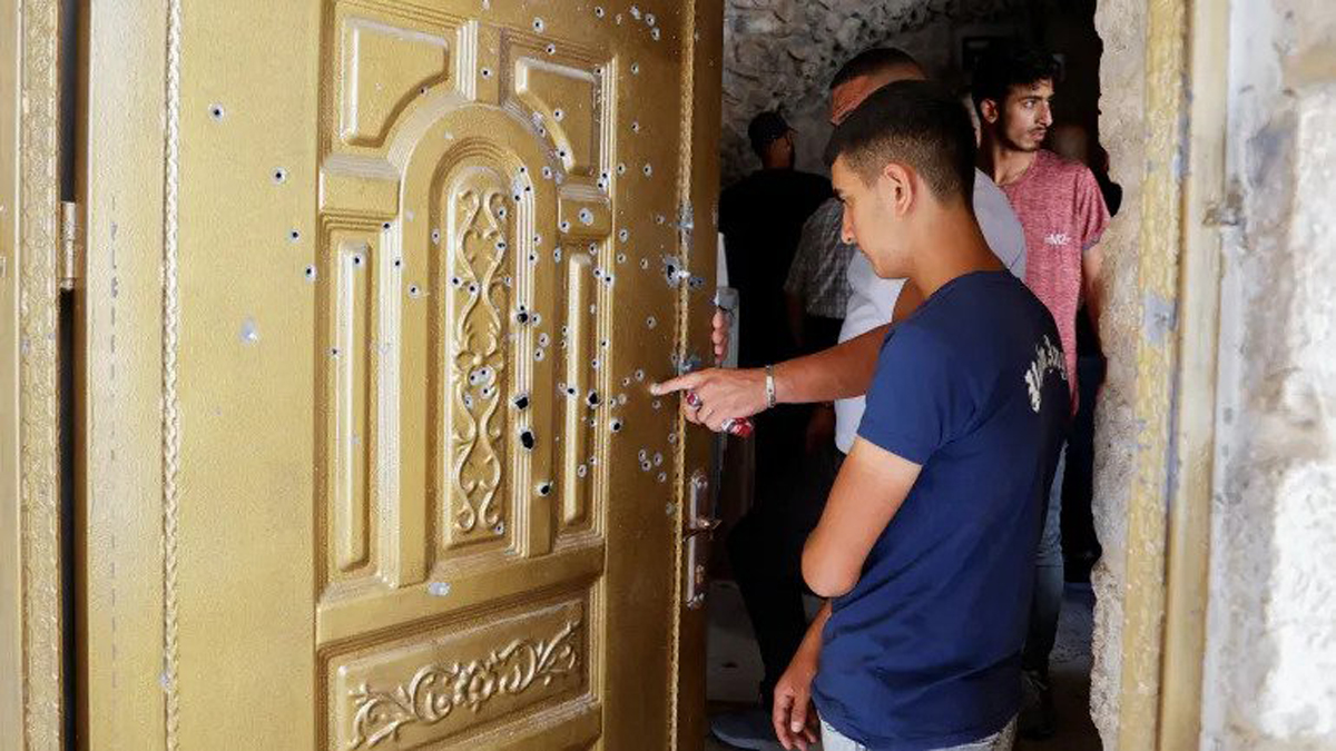 নাবলুসের এ বাড়িতে হামলা চালায় দখলদার ইসরায়েলি বাহিনী। তাদের ছোঁড়া গুলিতে ঝাঁঝরা হয়ে যায় বাড়ির দরজা