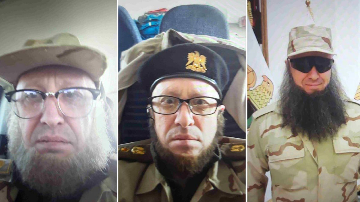 একটি ছবিতে দেখা যাচ্ছে, ওয়াগনার বস লিবিয়ান ন্যাশনাল আর্মির পতাকার সামনে সামরিক পোশাক ও নকল লম্বা দাড়ি লাগিয়ে দাঁড়িয়ে আছেন। ছবিটি কোনো একটি বিমান ঘাঁটিতে তোলা হয়েছে বলে ধারণা করা হচ্ছে।