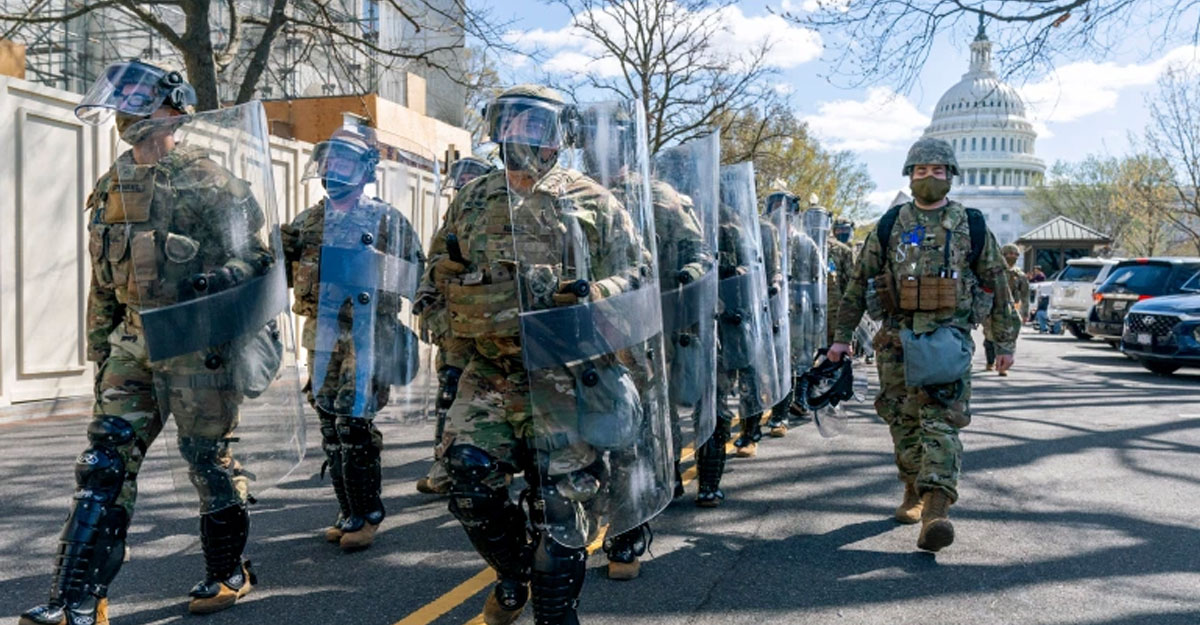 হামলার পর ক্যাপিটল ভবনের সামনে ন্যাশনাল গার্ডস বাহিনীর সদস্যদের অবস্থান