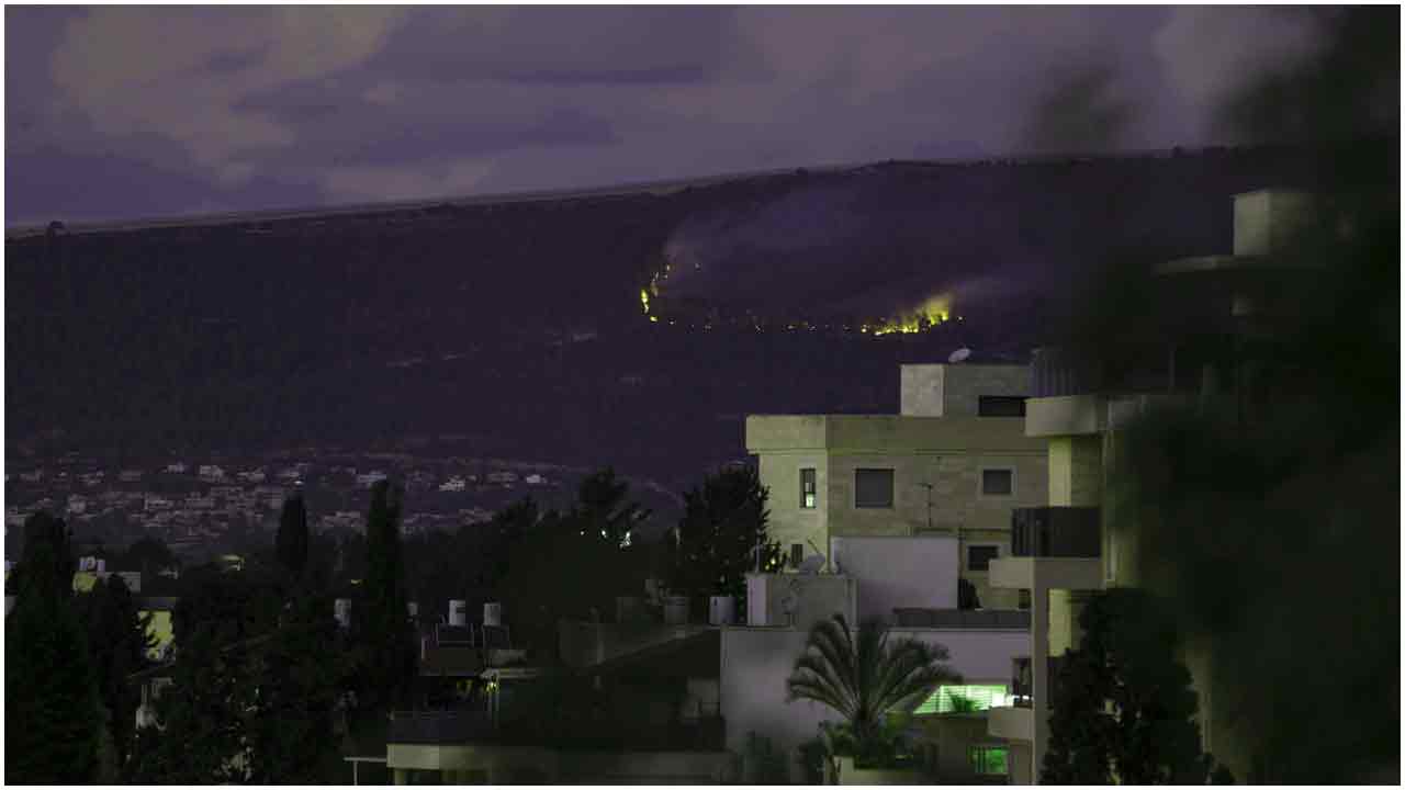 রোববার লেবানন থেকে হিজবুল্লাহর হামলায় ইসরায়েলি ভূখণ্ডের একটি বসতিতে আগুন ধরে যায় | ছবি: এপি