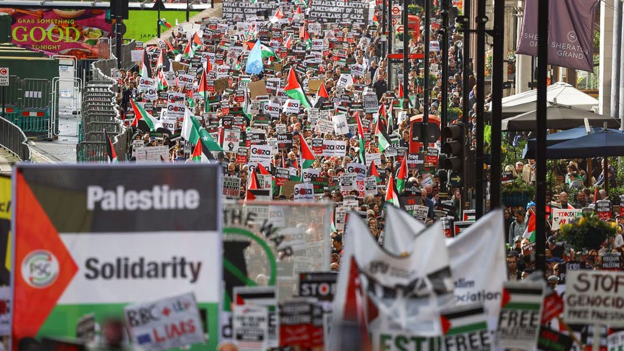 প্রতিবেদনে বলা হয়েছে, টানা দ্বিতীয় সপ্তাহের মতো লন্ডনে ফিলিস্তিনিপন্থি বিক্ষোভে অংশ নিয়েছে লাখো মানুষ। লন্ডনের মেট্রোপলিটন পুলিশের অনুমান, শনিবারে এই বিক্ষোভ ও পদযাত্রায় এক লাখ মানুষ অংশ নেয়। পরে যুক্তরাজ্যের প্রধানমন্ত্রীর দপ্তর ১০ নং ডাউনিং স্ট্রিটের কাছে সমাবেশের মাধ্যমে বিক্ষোভটি শেষ হয়।