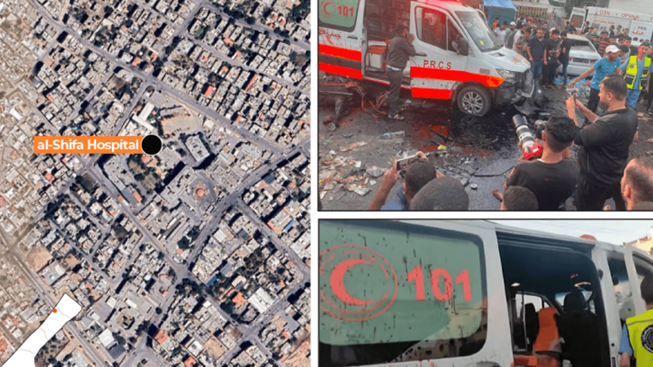 ফিলিস্তিনের স্বাস্থ্য মন্ত্রণালয়ের বরাত দিয়ে শনিবার (৪ নভেম্বর) মধ্যপ্রাচ্য ভিত্তিক সংবাদ মাধ্যমটি জানায়, গাজায় আল-শিফা হাসপাতালের গেটে একটি অ্যাম্বুলেন্সে হামলা চালায় ইসরায়েল।