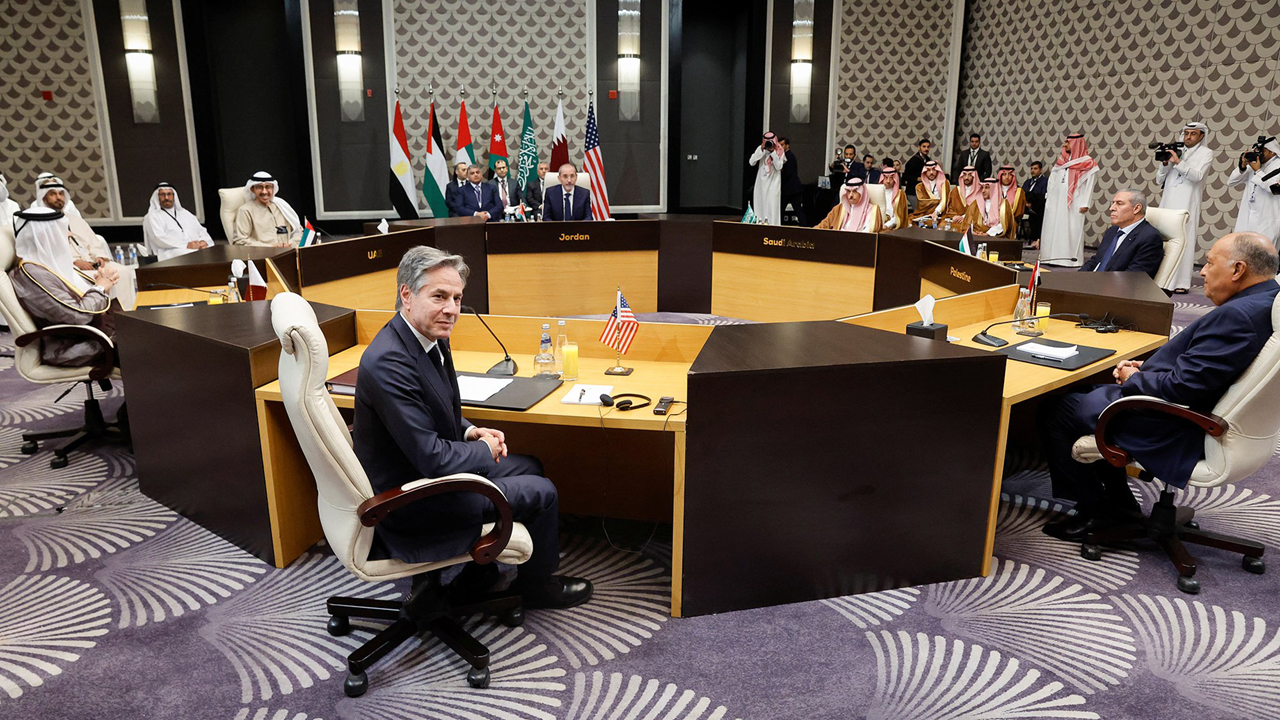 কাতারভিত্তিক সংবাদমাধ্যম আল জাজিরা জানিয়েছে, এই বৈঠকে আরব নেতাদের চাপের মুখে পড়েন ব্লিঙ্কেন। তারা গাজায় তাৎক্ষণিক যুদ্ধবিরতির দাবি জানান এবং হামাস-ইসরায়েল যুদ্ধ নিয়ে যুক্তরাষ্ট্র যে অবস্থান নিয়েছে এতে তারা সমর্থন জানাননি।