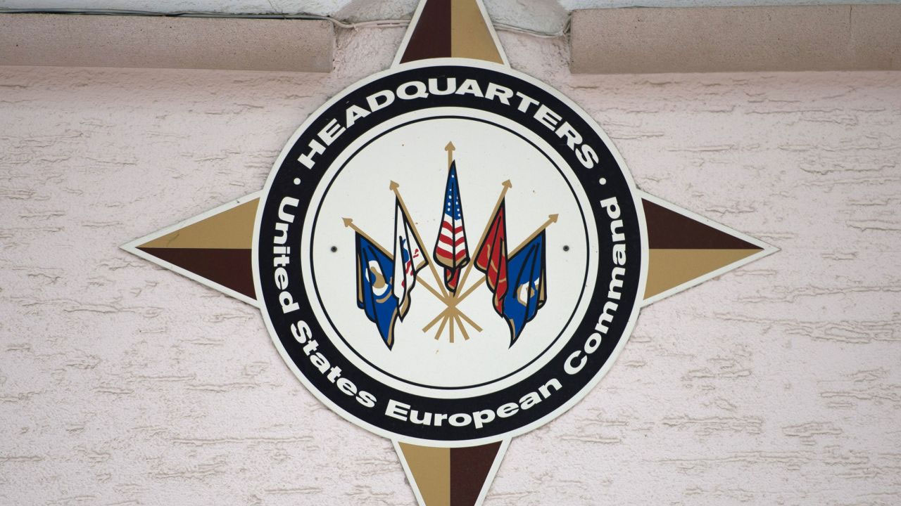 জার্মানির স্টুটগার্টে অবস্থিত সদর দপ্তরে ইউএস ইউরোপীয় কমান্ডের লোগো দেখা যাচ্ছে