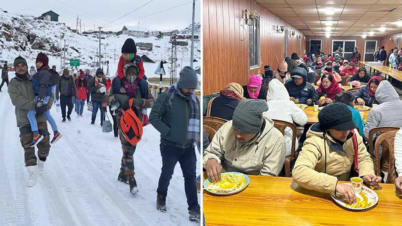 সেনাবাহিনীর পক্ষ থেকে এক বিবৃতি দিয়ে জানানো হয়েছে, তুষারপাতের কারণে আটকে পড়া পর্যটকদের উদ্ধার কাজে হাত লাগায় ত্রিশক্তি কর্পস। এক এক করে বিকেল থেকে সব পর্যটকদের উদ্ধার করে পার্শ্ববর্তী সেনা ক্যাম্পে নিয়ে আসা হয়। সেখানেই প্রাথমিক চিকিৎসার পর তাদের খাবার, গরম পোশাক এবং ওষুধ দেওয়া হয়। উদ্ধার করা পর্যটকদের ঠাঁই দেওয়ার জন্য নিজেদের ব্যারাকও ছেড়ে দিয়েছেন সেনা সদস্যরা।