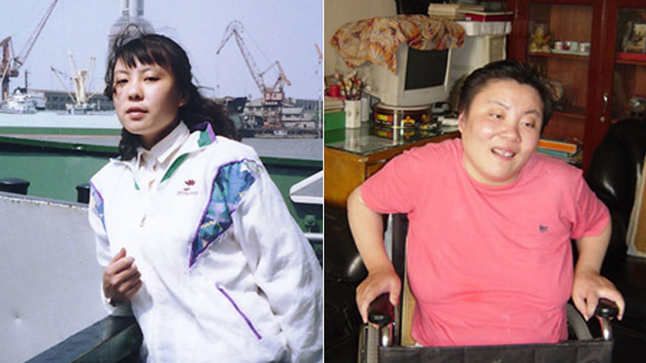 বিষ প্রয়োগের আগে (বামে) ও পরে (ডানে) ঝু লিং।