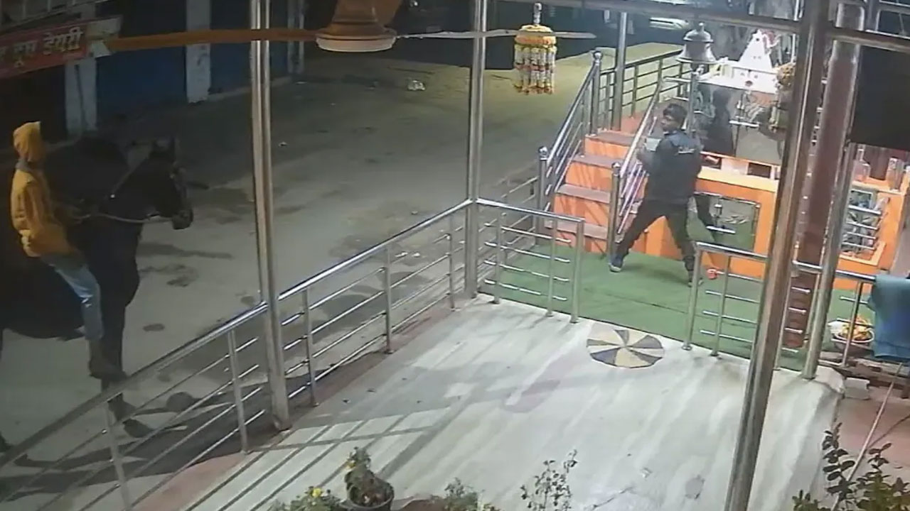 গত ২০ ডিসেম্বর রাতে কানপুর জেলার বাররা-৬ এলাকার রাধাকৃষ্ণ মন্দিরে ঘটনাটি ঘটেছে। সোশ্যাল মিডিয়ায় সেই ঘটনার সিসিটিভি ফুটেজটি ভাইরাল হয়েছে। তাতে দেখা যাচ্ছে, ঘোড়ায় চড়ে গভীর রাতে মন্দিরের বাইরে এসে দাঁড়ায় দুই চোর। তাদের লক্ষ্য ছিল মন্দিরের দানপাত্র চুরি করা।