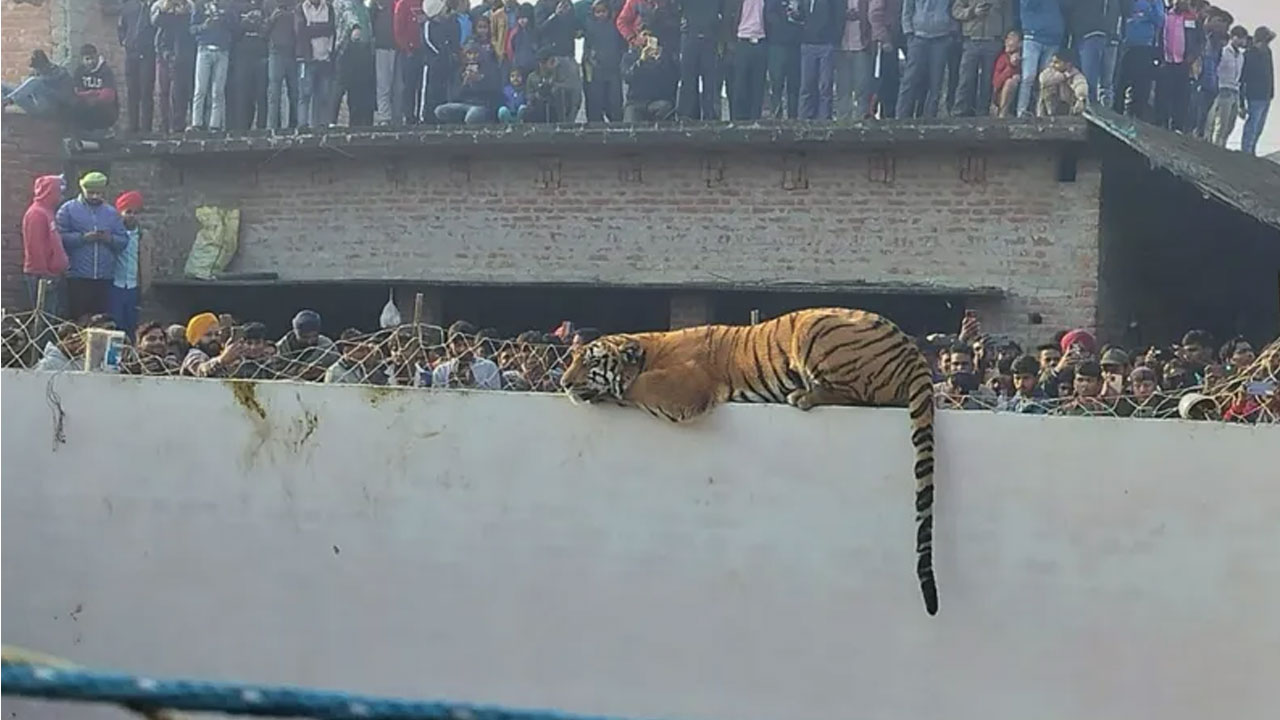 সকাল হতেই আশপাশের গ্রাম থেকে কয়েক হাজার মানুষ জড়ো হন। ততক্ষণে প্রাচীরেই ঘুমিয়ে পড়েছে বাঘটি।