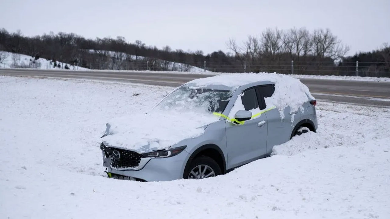 গত ১৫ জানুয়ারি আইওয়াতে সড়ক দুর্ঘটনার পরে একটি গাড়ি দেখা যাচ্ছে