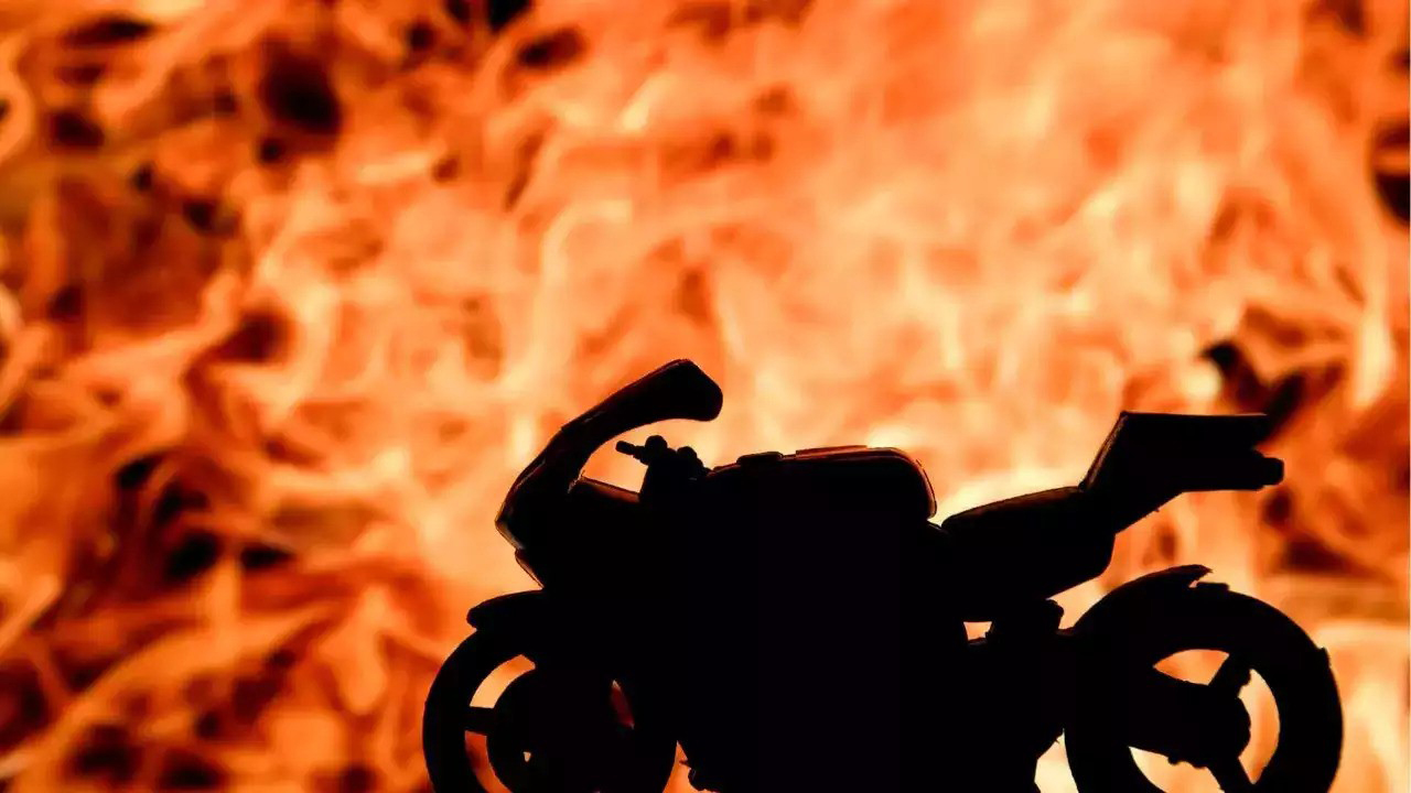 ভিডিওতে আরও দেখা যায়, আগুনে জ্বলে ওঠা মোটরসাইকেলটির সামনে কিছু সময় দাঁড়িয়েও ছিলেন তিনি।