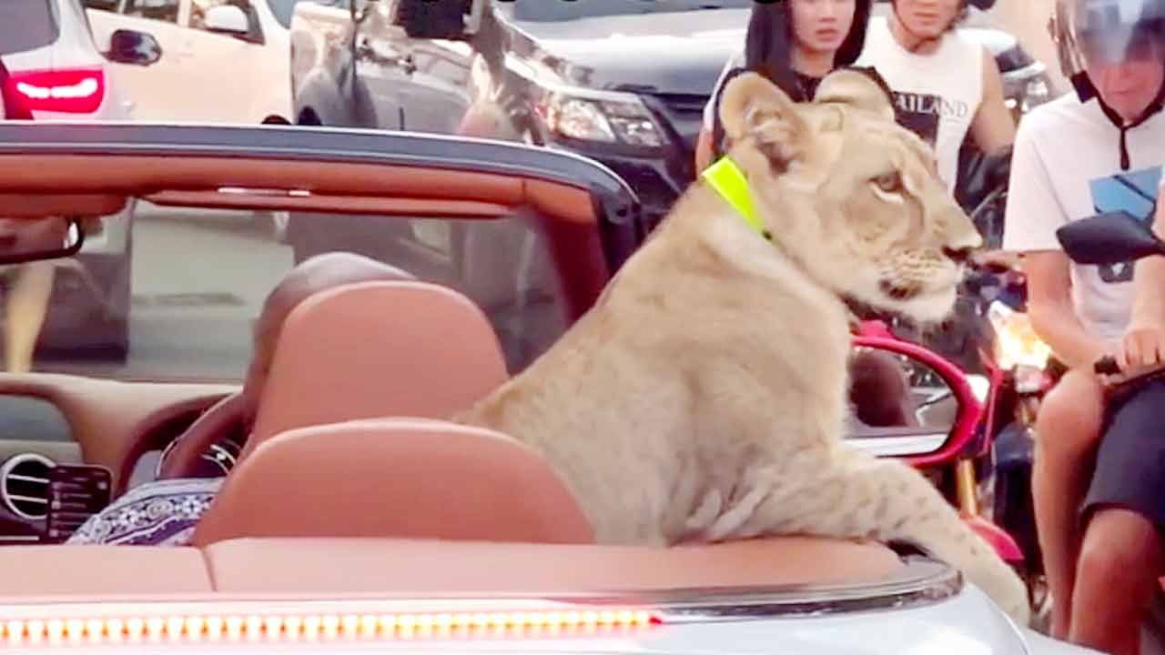 সম্প্রতি গাড়ির পেছনের আসনে একটি সিংহের শাবক নিয়ে ঘুরতে বেড়িয়ে এবং সেই ভ্রমণের দৃশ্য সামাজিক যোগাযোগমাধ্যমে পোস্ট করে ভাইরাল হয়েছেন থাইল্যান্ডের এক নারী। সেই ভাইরালের মাত্রা এমন জায়গায় পৌঁছেছে যে সোয়াংজিত কুসুংনার্ন নামের ওই নারীকে এখন জেল জরিমানার মুখে পড়তে হয়েছে।