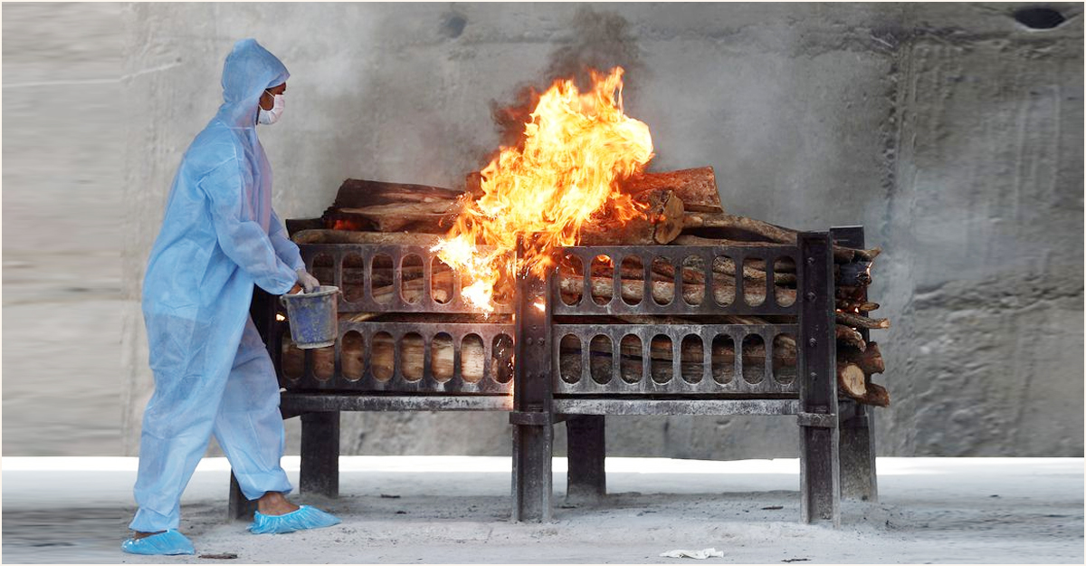ভারতে মহামারিতে মৃতদের পোড়াতে দম ফেলার ফুরসত পাচ্ছেন না শ্মশানের কর্মীরা