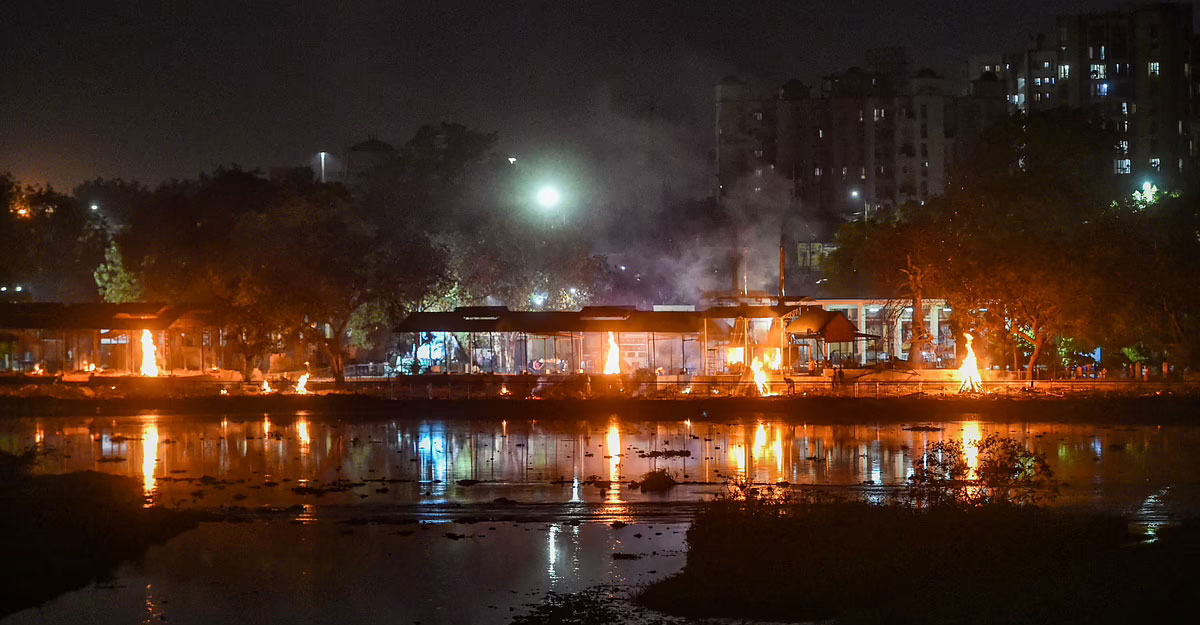 ভারতের উত্তরপ্রদেশের রাজধানী লখনৌর একটি শ্মশানের দৃশ্য, করোনায় মৃতদের সংখ্যা ব্যাপকভাবে বৃদ্ধি পাওয়ায় সেখানে চাপ বেড়ে বহুগুণে