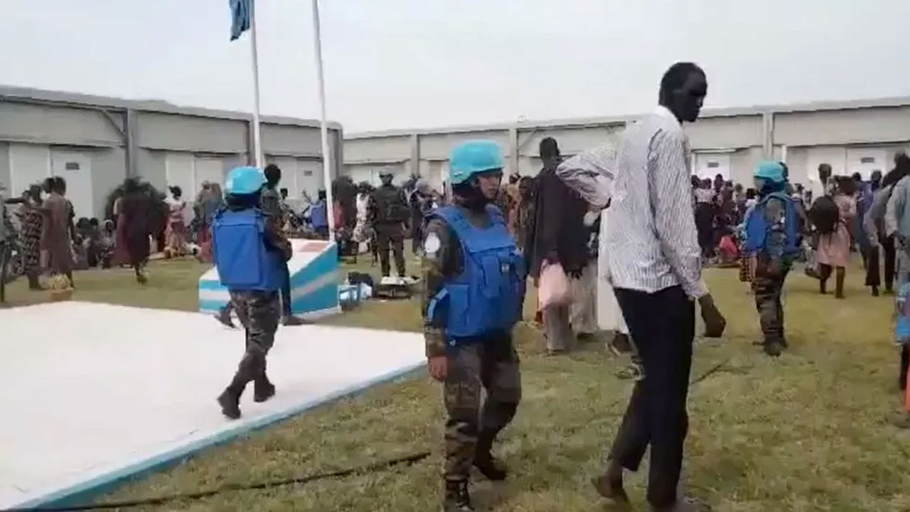 মারাত্মক হামলার পর জাতিসংঘের শান্তিরক্ষী ক্যাম্পে স্থানীয়রা জড়ে হন বলে সোশ্যাল মিডিয়ার ফুটেজে দেখা গেছে