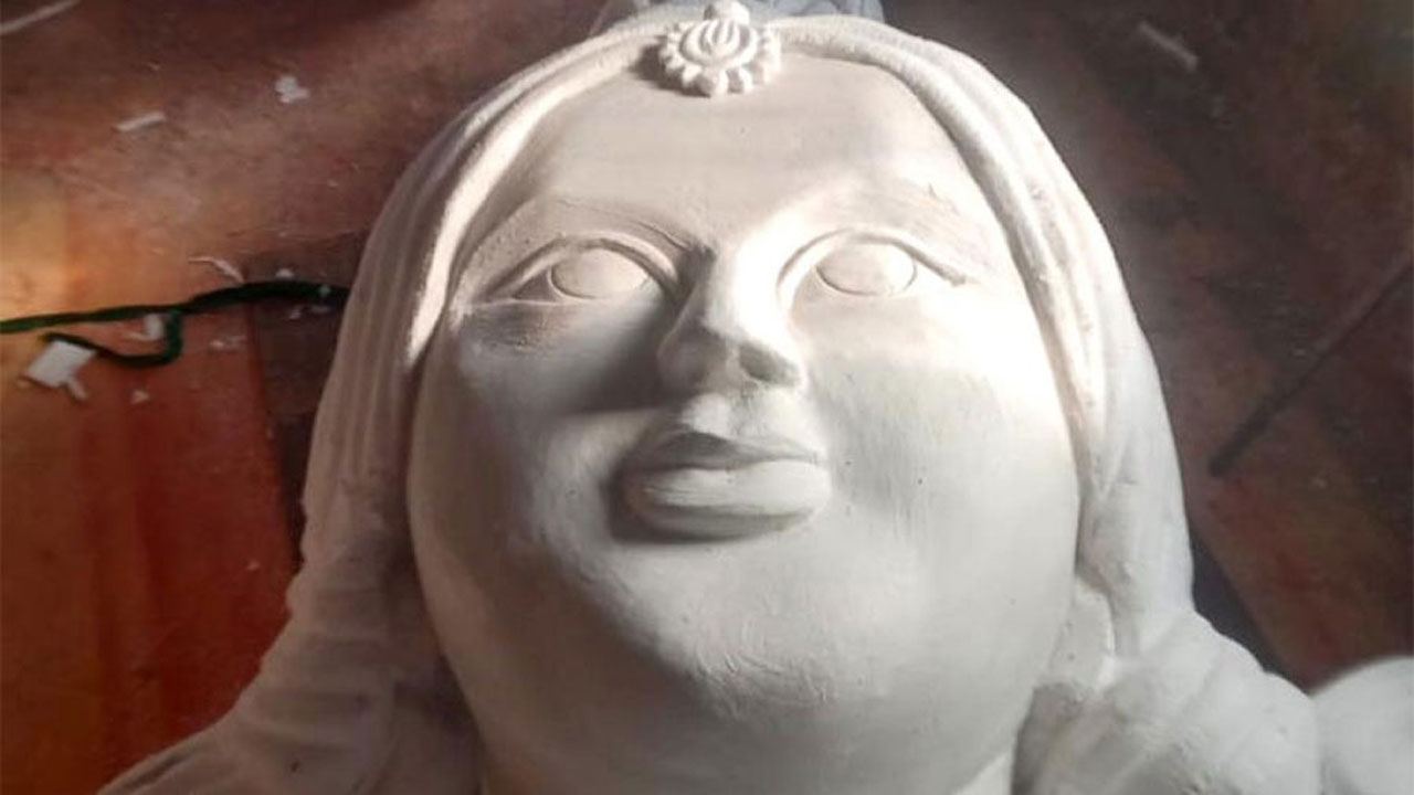 ৪০ ফুটের সরস্বতী প্রতিমা, ব্যবহার হয়নি মাটির