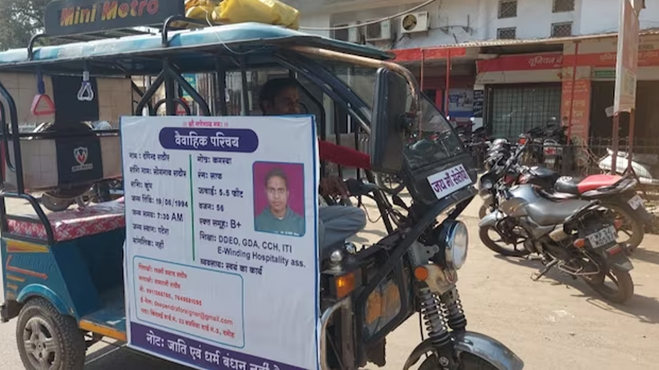 ভারতীয় সংবাদ মাধ্যমের খবরে বলা হয়, ২৯ বছর বয়সী ওই যুবকের নাম দীপেন্দ্র রাঠোর। তার বাড়ি মধ্যপ্রদেশের দামোহ শহরে। নিজের ই-রিকশায় ব্যানার লাগিয়ে পাত্রী খুঁজছেন তিনি। সঙ্গে ছবি ও ব্যক্তিগত তথ্যও দিয়েছেন।