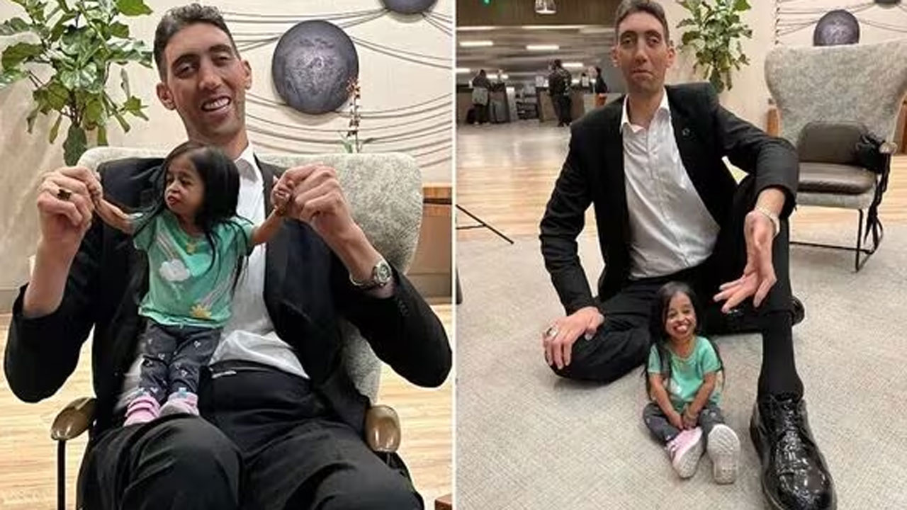 তুর্কি নাগরিক সুলতান কোসেনের উচ্চতা ৮ ফুট ২ দশমিক ৮ ইঞ্চি। বিশ্বের সবচেয়ে লম্বা পুরুষ তিনি। অন্যদিকে সবচেয়ে কম উচ্চতার ২ ফুট ৭ ইঞ্চির জ্যোতি আমেজের বাড়ি ভারতে। সম্প্রতি ক্যালিফোর্নিয়ায় দ্বিতীয়বার দেখা হয়েছে তাদের। এর আগে ২০১৮ সালে তাদের একসঙ্গে দেখা গিয়েছিল।