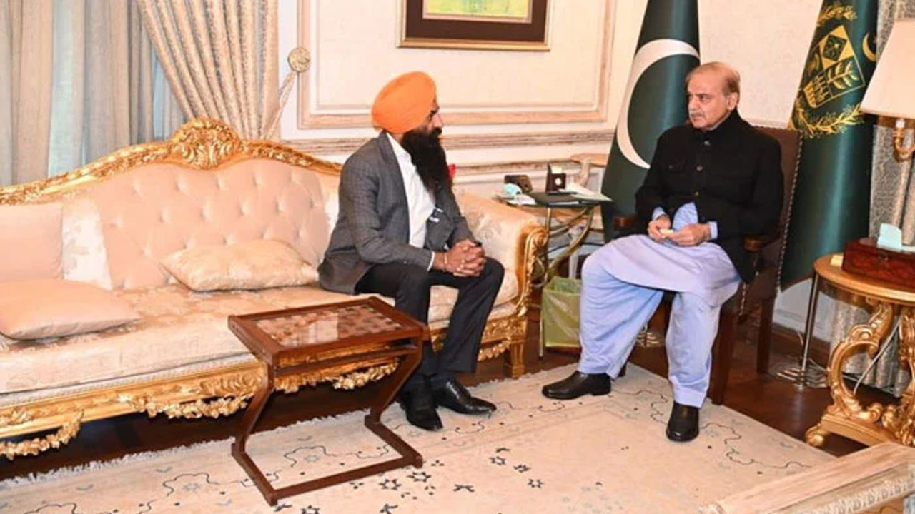 পাকিস্তানের নবনির্বাচিত প্রধানমন্ত্রী শেহবাজ শরিফের সাথে কথা বলছেন পিএমএল-এন এমপিএ সর্দার রমেশ অরোরা (ফাইল ছবি)