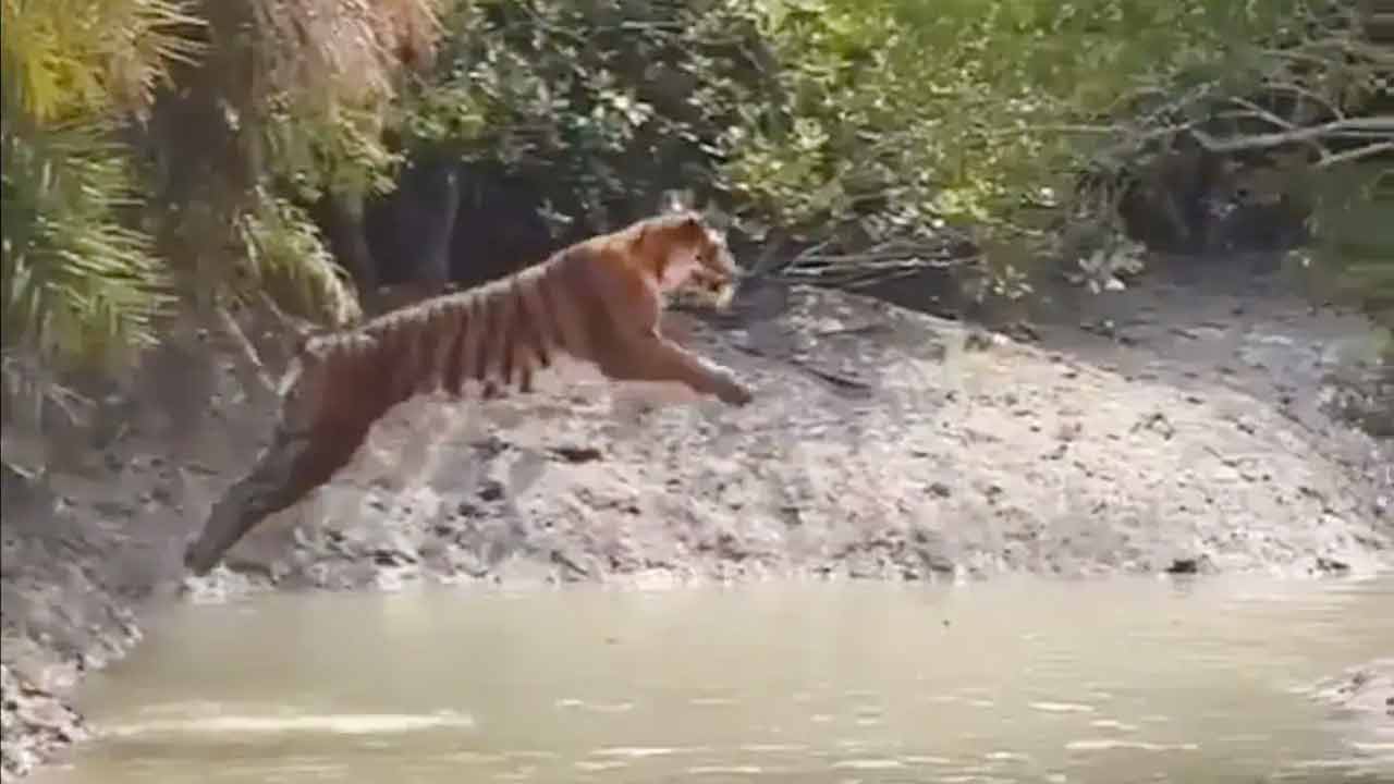 সুন্দরবনে রয়েল বেঙ্গল টাইগারের রাজকীয় লাফ, ভিডিও ভাইরাল
