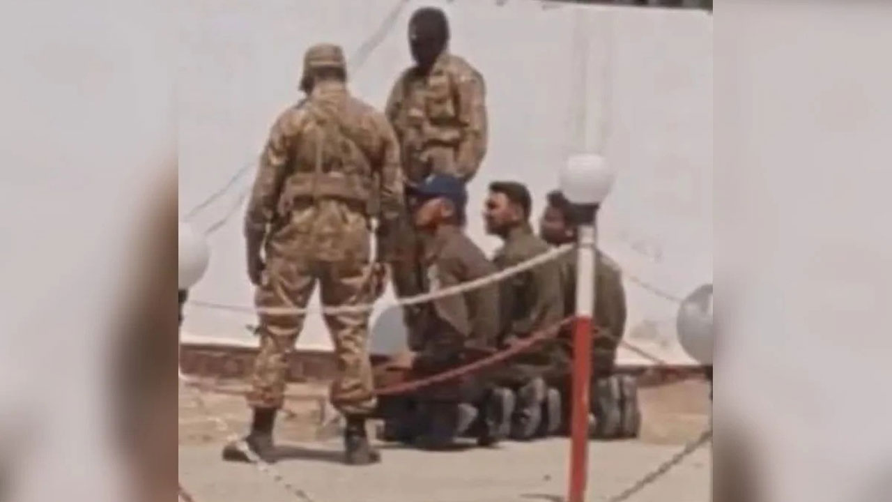 পুলিশ সদস্যদের হাঁটু গেড়ে বসতে বাধ্য করেন সেনা সদস্যরা।