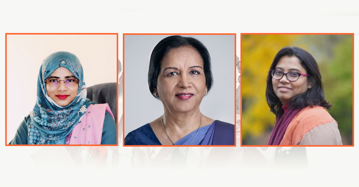 ছবিতে বাঁ থেকে যথাক্রমে সালমা সুলতানা, ফেরদৌসী কাদরী ও সায়মা সাবরিনা।