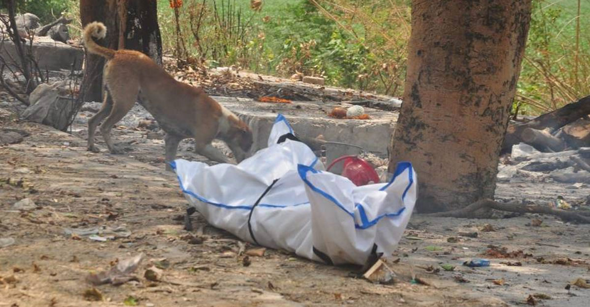 দিল্লির গাজিয়াবাদের হিন্দোন শ্মশানের সামনে মৃতদেহে কুকুরের কামড়ানোর দৃশ্য