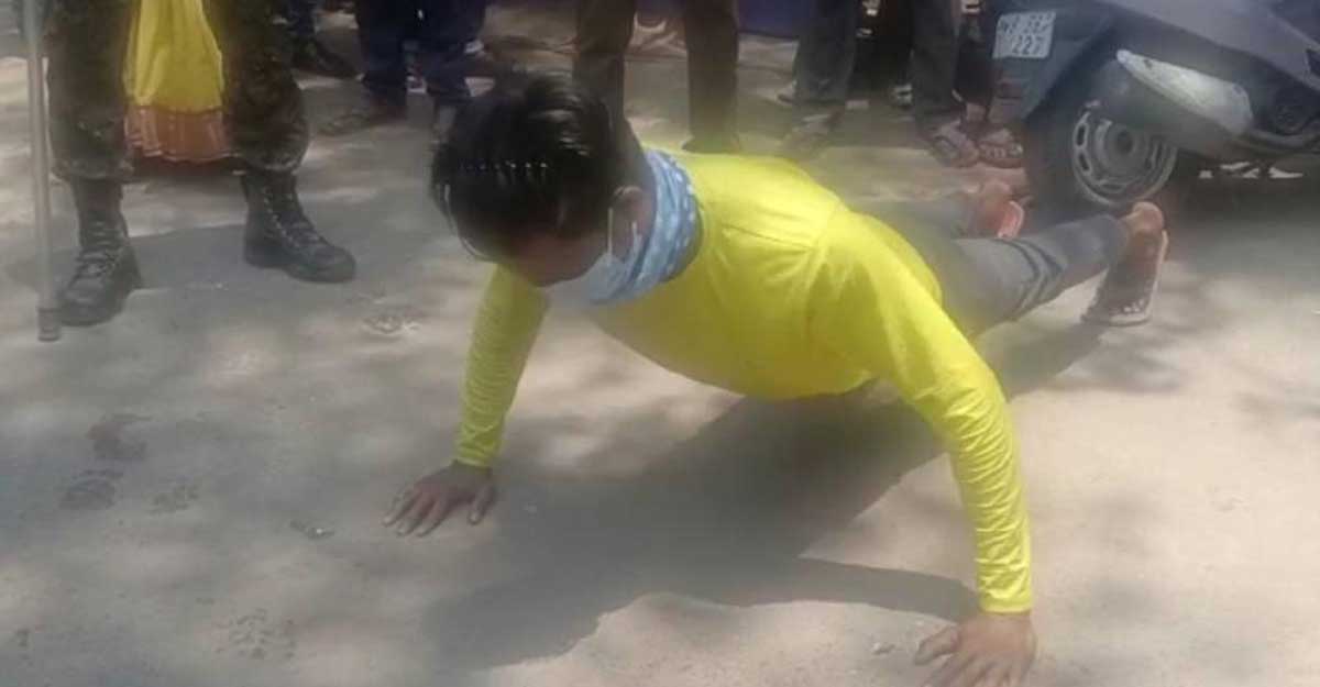 পুলিশের দেওয়া শাস্তি হিসেবে সড়কে পুশআপ দিচ্ছেন এ যুবক