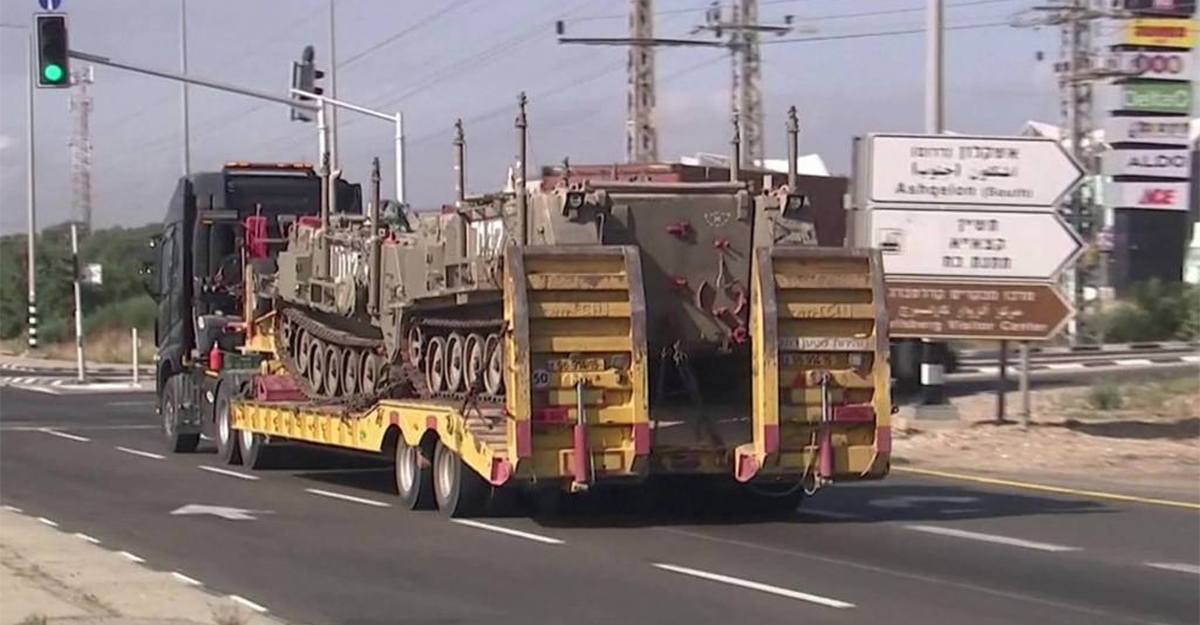 অবরুদ্ধ গাজা সীমান্ত অভিমুখে ইসরায়েলের সামরিক যান
