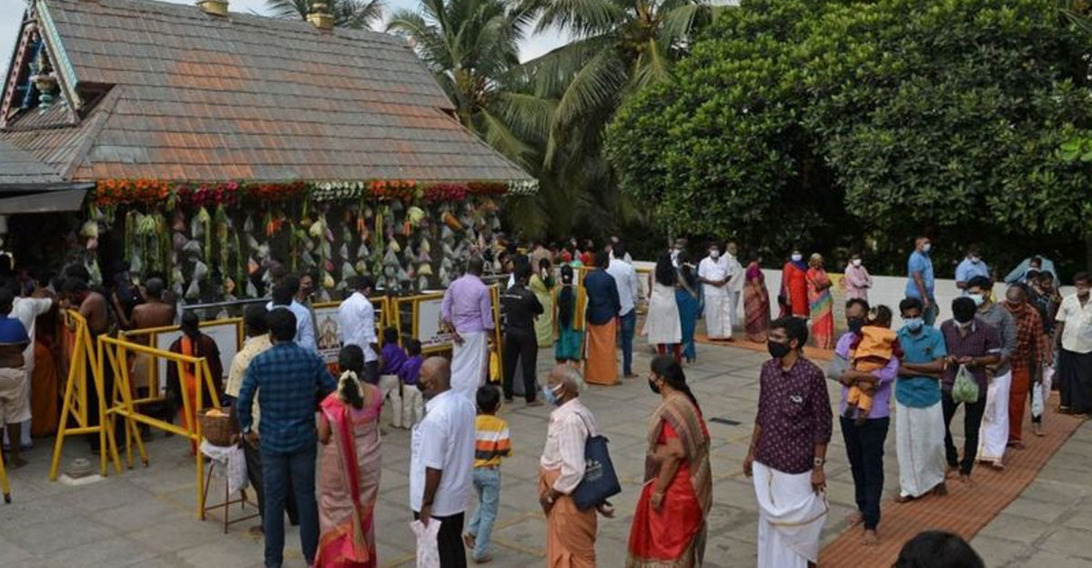 তামিলনাডুর একটি মন্দিরের সামনে ভক্তসমাগম