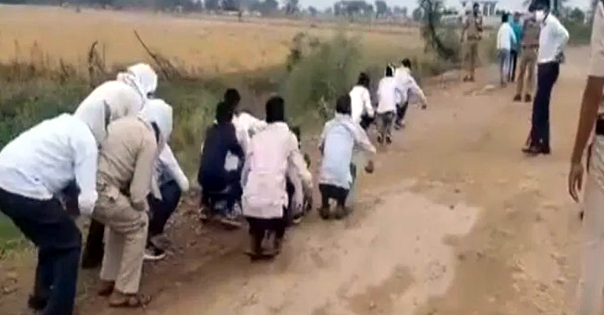 পুরো ঘটনাটির ভিডিও টুইটারে দেওয়া হয়েছে। তাতে দেখা যাচ্ছে, পর পর ব্যাঙের মতো লাফিয়ে চলেছেন সকলে। একজন আবার ঠিকমতো লাফাতে পারছিলেন না বলে দাঁড়িয়ে থাকা এক পুলিশের লাঠির ঘা-ও পড়ল তার পিঠে। সপ্তাহখানেক আগে বিহারের কৃষ্ণগঞ্জেও ঠিক একই ছবি দেখা গিয়েছিল। সেখানেও করোনাবিধি উপেক্ষা করার জন্য একদল যুবককে বাজারের মধ্যে ব্যাঙের মতো লাফাতে হয়েছিল।