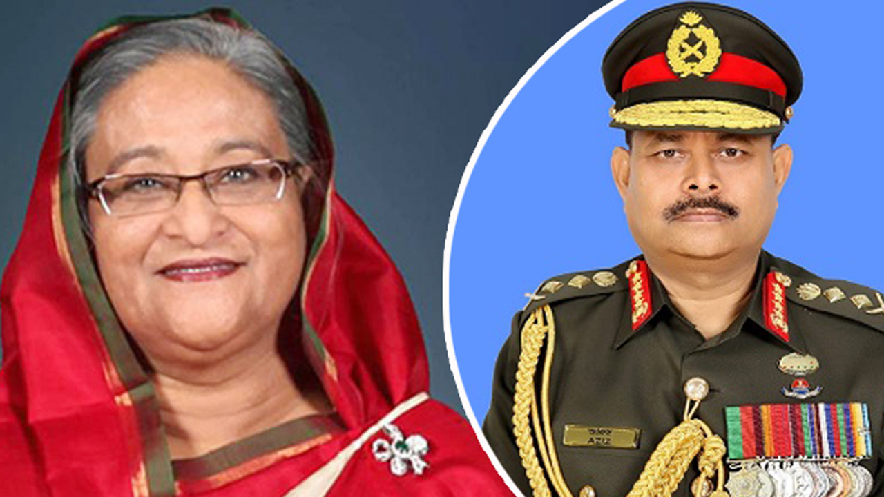 সাবেক প্রধানমন্ত্রী শেখ হাসিনা (বামে) ও সাবেক সেনাপ্রধান জেনারেল আজিজ।