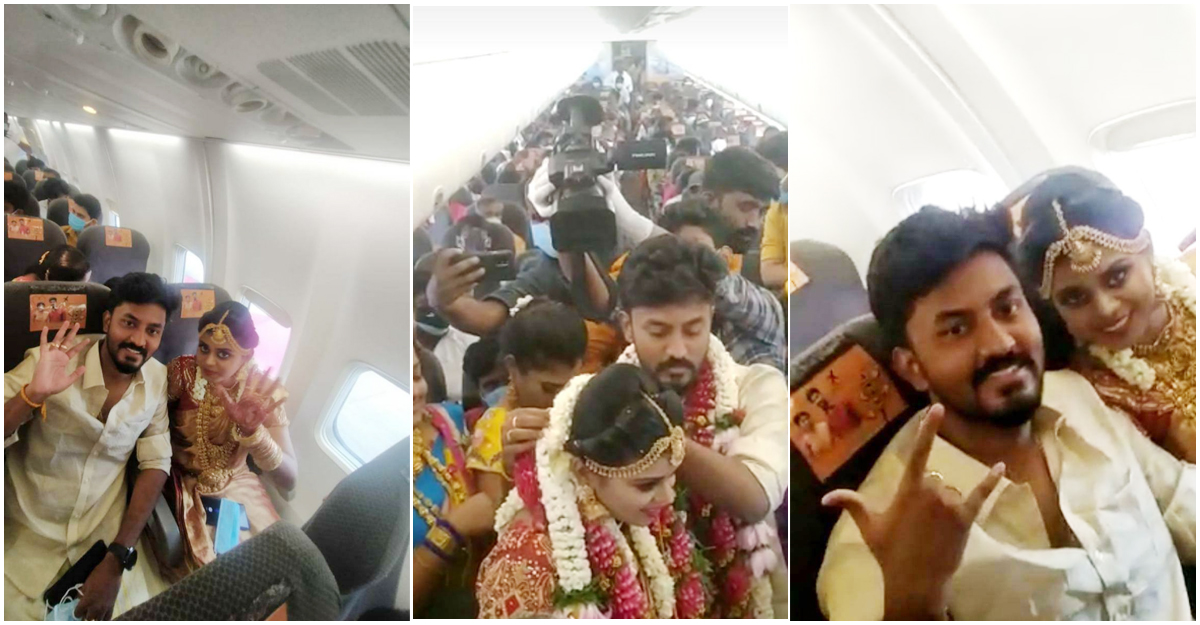করোনা পরিস্থিতিতে তামিলনাড়ুর লকডাউন আর কারফিউয়ের বিধি-নিষেধ এড়াতে বিমানেই বিয়ে সারবেন বলে পরিকল্পনা করেছিলেন তারা। যেমন ভাবা তেমন কাজ।