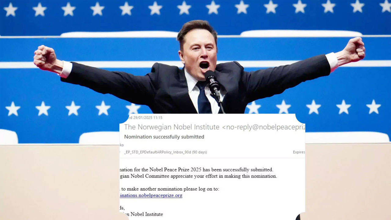 বাকস্বাধীনতা বিস্তারে গুরুত্বপূর্ণ ভূমিকা রাখায় নোবেল শান্তি পুরস্কারের জন্য মনোনয়ন পেয়েছেন বিশ্বের শীর্ষ ধনী এবং যুক্তরাষ্ট্রের বর্তমান প্রেসিডেন্ট ডোনাল্ড ট্রাম্পের নেতৃত্বাধীন প্রশাসনের মন্ত্রী ইলন মাস্ক। নোবেল কমিটি ইতোমধ্যে এ তথ্য নিশ্চিত করে মাস্ককে ইমেইলও প্রদান করেছে।