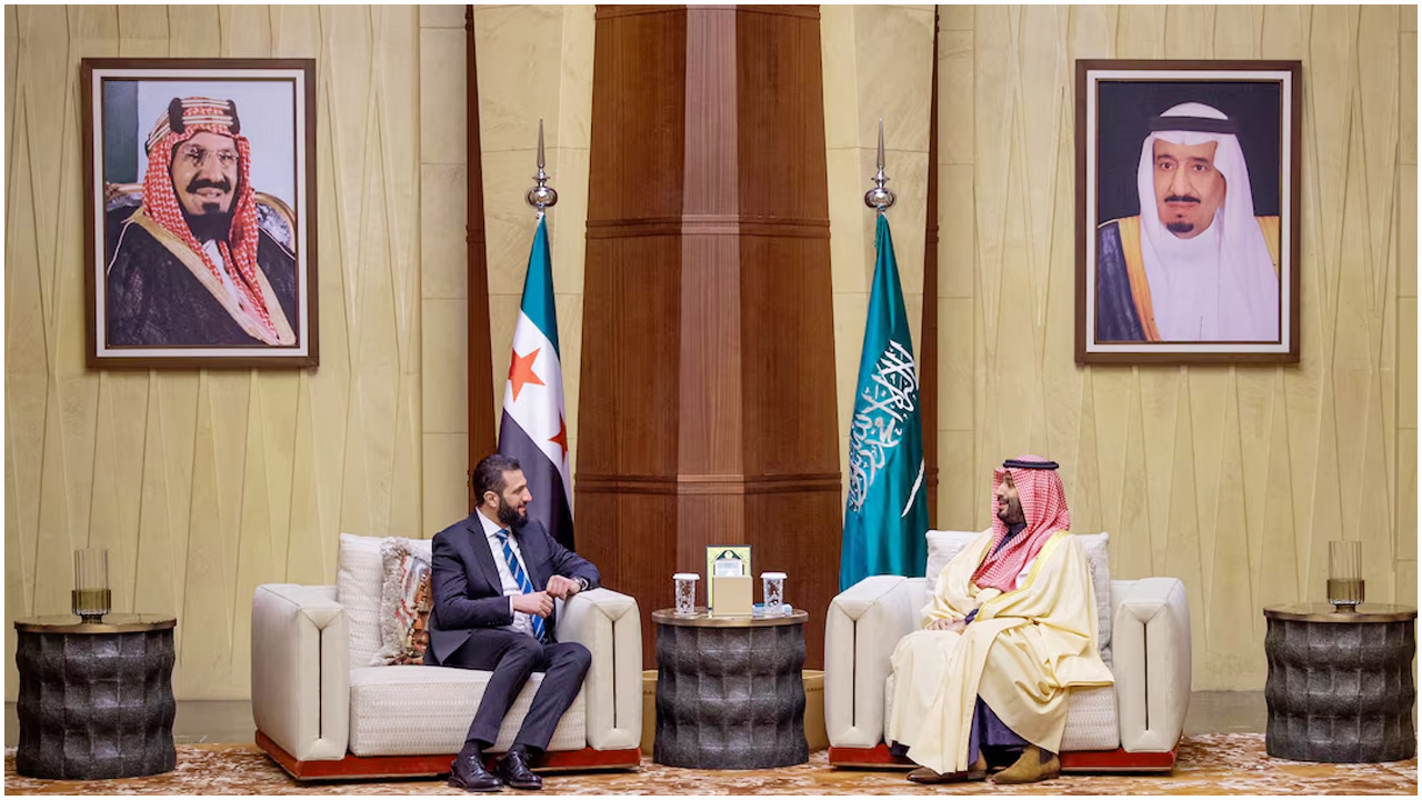 টেলিভিশনে সরাসরি সম্প্রচারি ফুটেজে দেখা যায়, রাজধানী রিয়াদে ক্রাউন প্রিন্সের সাথে করমর্দন করছেন সিরিয়ার নতুন প্রেসিডেন্ট আহমেদ আল-শারা। এর আগে, সিরিয়ার প্রেসিডেন্টকে রিয়াদের কিং খালিদ আন্তর্জাতিক বিমানবন্দরে বিমানবন্দরে স্বাগত জানান রিয়াদ অঞ্চলের ডেপুটি গভর্নর প্রিন্স মোহাম্মদ বিন আব্দুল রহমান বিন আব্দুল আজিজ।