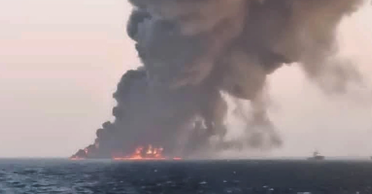 হরমুজ প্রণালীতে অগ্নিকাণ্ডের পর ডুবে গেল ইরানের বৃহত্তম জাহাজ