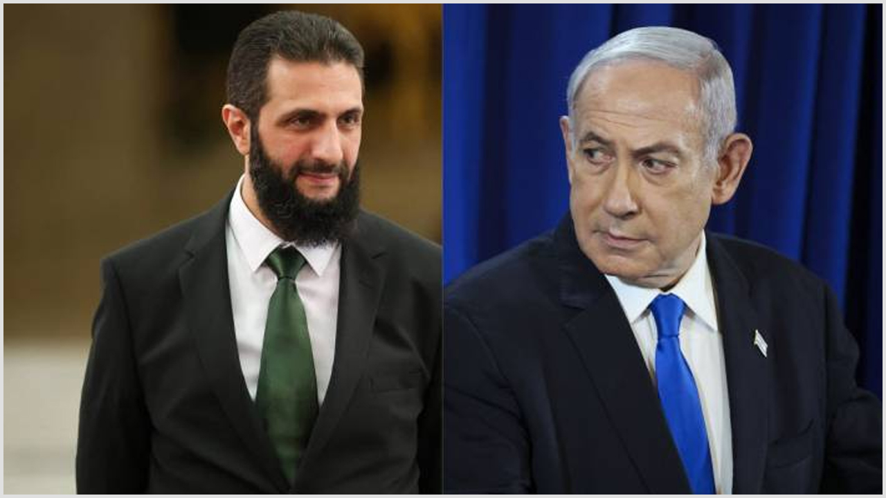 সিরিয়ার প্রেসিডেন্ট আহমেদ আল সারা (বামে), দখলদার ইসরায়েলের প্রধানমন্ত্রী বেঞ্জামিন নেতানিয়াহু (ডানে)।