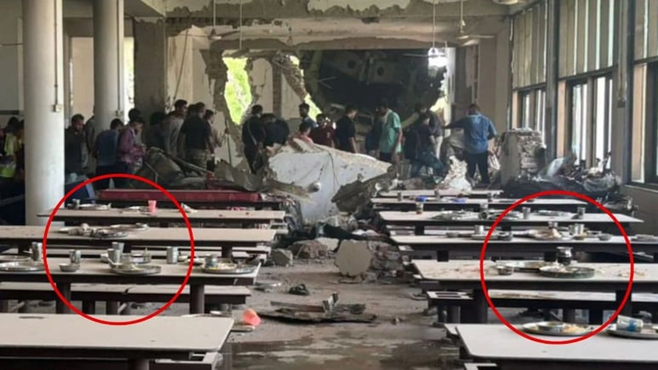 ভারতের গুজরাটের আহমেদাবাদে বৃহস্পতিবার দুপুরে বিধ্বস্ত হয় এয়ার ইন্ডিয়ার একটি বিমান। এটি সরাসরি আঘাত হানে সেখানকার বিজে মেডিকেল কলেজের ছাত্রাবাসে। একটি ছবিতে দেখা যাচ্ছে, ছাত্রাবাসের টেবিলে পড়ে আছে না খাওয়া খাবার। ধারণা করা হচ্ছে, যখন বিমানটি বিধ্বস্ত হয় তখন সেখানকার শিক্ষার্থীরা দুপুরের খাবার খাচ্ছিলেন।