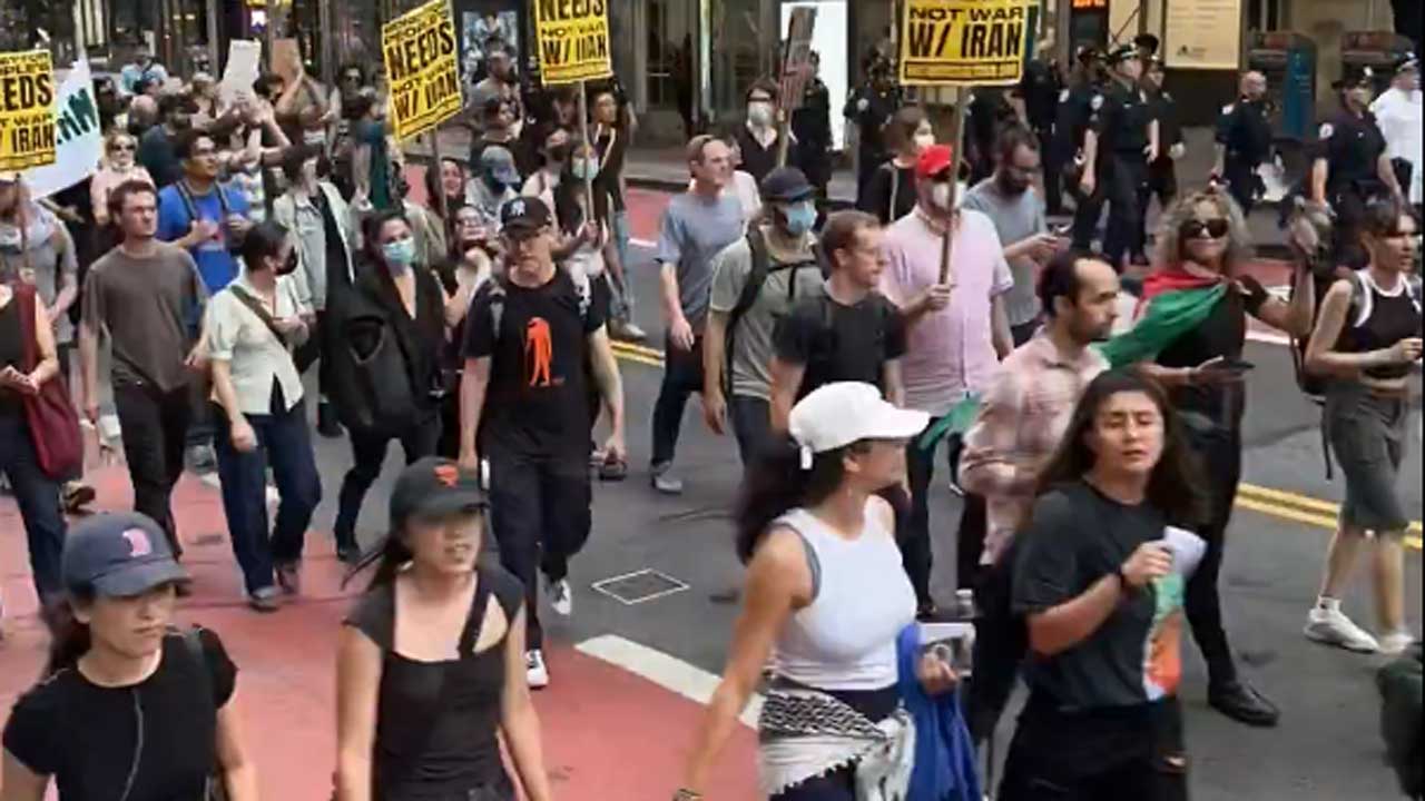 সামাজিক মাধ্যম এক্সে বিক্ষোভকারীরা তাদের বিক্ষোভের ভিডিও পোস্ট করছেন। ভিডিওতে দেখা গেছে, শত শত মানুষ ম্যানহাটনে মিছিল করেছে। তারা ইরানে হামলার হুমকি ও গাজায় ইসরায়েলের যুদ্ধের প্রতি যুক্তরাষ্ট্রের সমর্থনের নিন্দা জানান।