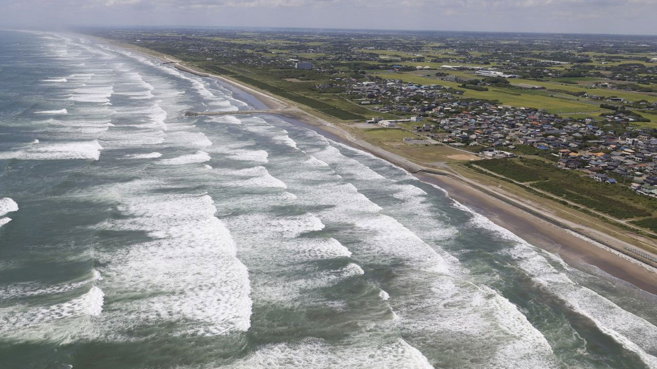 জাপানের চিবা প্রিফেকচারের সোসা সিটির কুজুকুরি উপকূলে সুনামির ঢেউ আছড়ে পড়ছে। বুধবারের ছবি