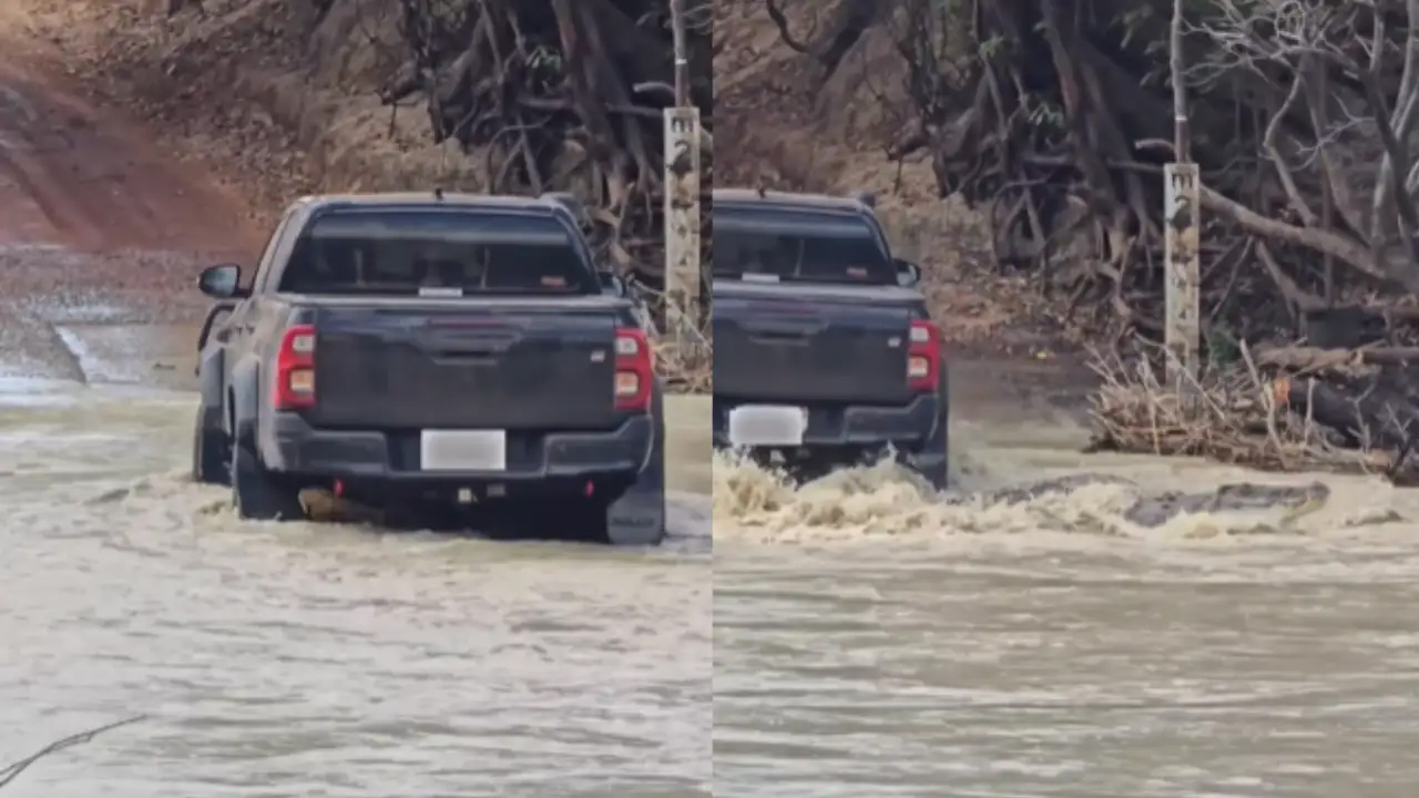 বন্যার পানিতে ডুবে গেছে রাস্তা। সেটি দিয়ে গাড়ি নিয়ে যাচ্ছিলেন চালক। তবে ডুবে যাওয়া রাস্তায় যে একটি কুমির বসে আছে, সেটি আর দেখেননি তিনি। এতে করে কুমিরটির ওপর দিয়েই গাড়ি চালিয়ে দিয়েছেন ওই চালক।