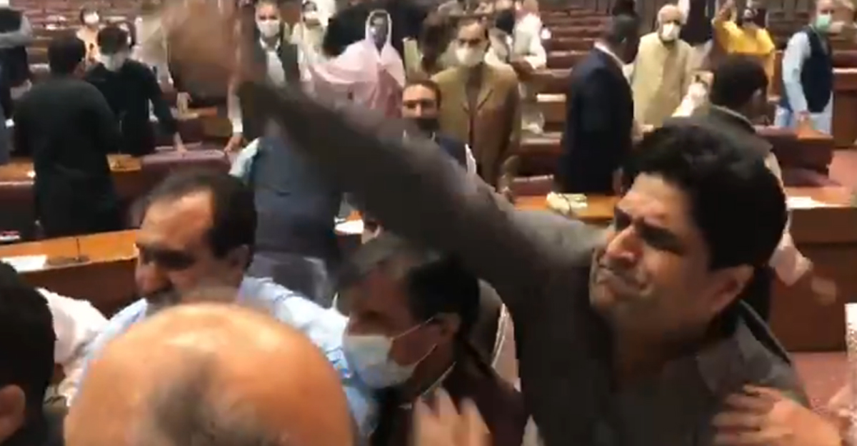 জনপ্রতিনিধিরা একে অন্যের দিকে তেড়ে আসা শুরু করেন, হাতহাতি-মারপিটের পাশাপাশি একে অপরের দিকে ফাইল, বাজেট বই, পানির বোতল ইত্যাদি ছুঁড়ে মারা শুরু করেন। প্রায় ৪০ মিনিট ধরে এই অবস্থা চলার পর পার্লামেন্টের নিরাপত্তা বাহিনীর সদস্যদের হস্তক্ষেপে পরিস্থিতি কিছুটা শান্ত হয়। এক পর্যায়ে ন্যাশনাল অ্যাসেম্বলি স্পিকার আসাদ কায়সার অধিবেশন মুলতবি ঘোষণা করতে বাধ্য হন।
