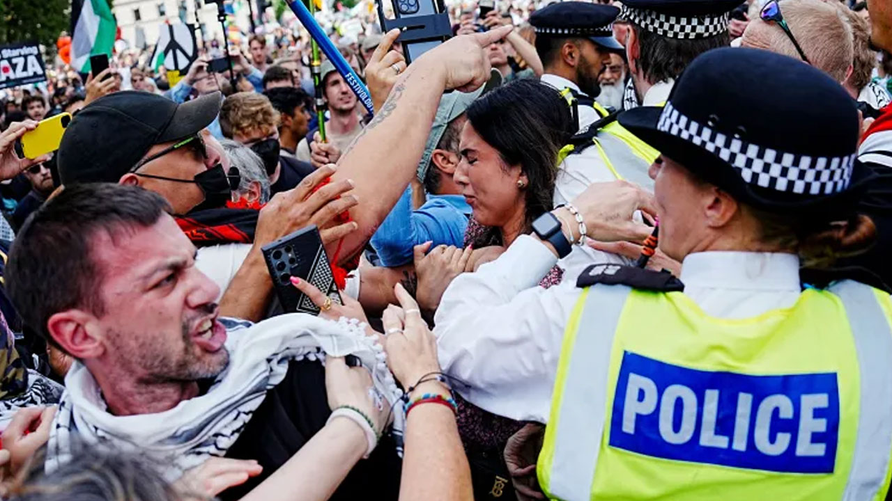 লন্ডনস মেট্রোপলিটন পুলিশ জানিয়েছে , পুলিশ কর্মকর্তাদের ওপর হামলা এবং একটি নিষিদ্ধ সংগঠনের প্রতি সমর্থন প্রকাশসহ বিভিন্ন অপরাধের জন্য ৪২৫ জনেরও বেশি লোককে গ্রেপ্তার করা হয়েছে। বিক্ষোভে নিয়োজিত পুলিশ কর্মকর্তারা শারীরিক ও মৌখিক আক্রমণের শিকার হয়েছেন। যার মধ্যে ঘুষি, লাথি, থুতু নিক্ষেপ এবং বস্তু ছোড়া অন্তর্ভুক্ত।