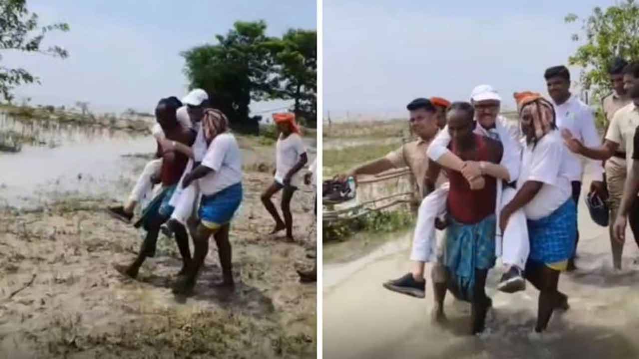 ভিডিও: বন্যা পরিদর্শনে গিয়ে গ্রামবাসীর কাঁধে চড়ে বসলেন ভারতীয় সংসদ সদস্য