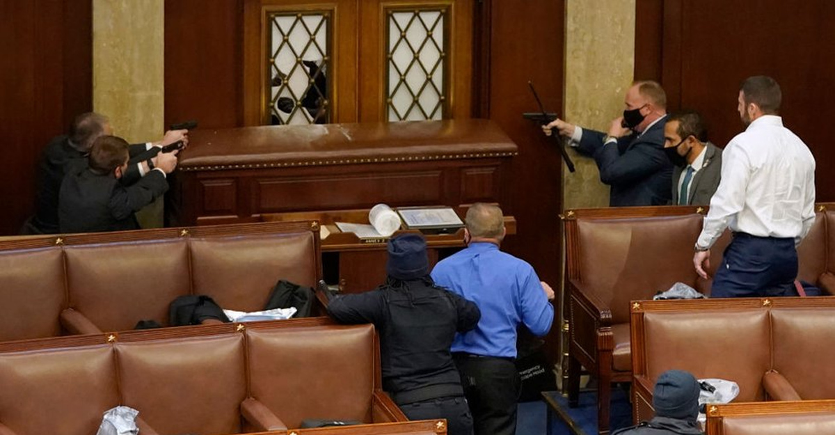 অধিবেশনে ইলেকটোরাল কলেজের দেওয়া ভোটগুলো গণনা এবং তা চূড়ান্তভাবে প্রত্যয়ন করার সময় ট্রাম্প সমর্থকরা নিরাপত্তা ব্যারিকেড ভেঙে ক্যাপিটলের ভেতরে প্রবেশ করে।